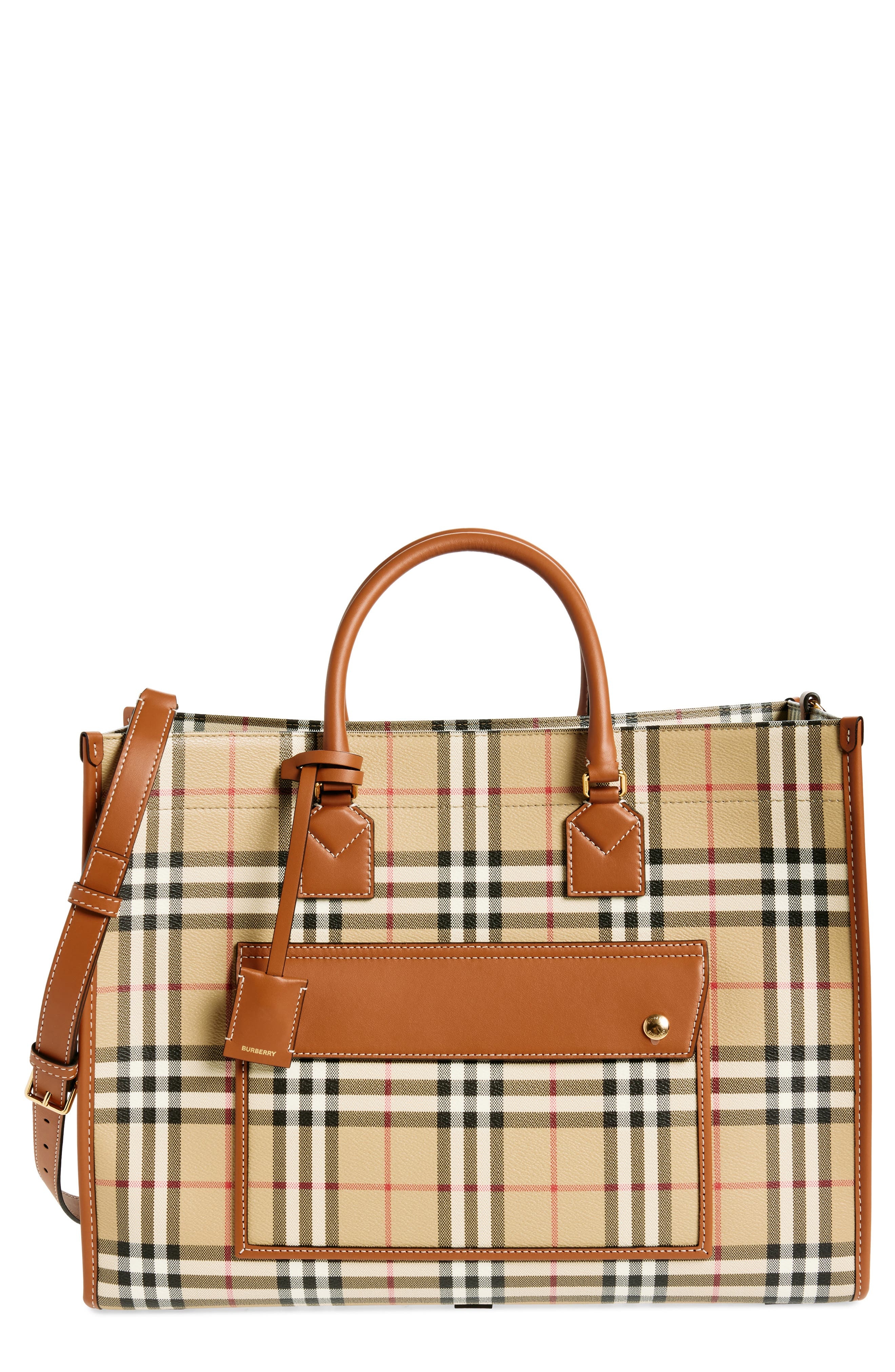 burberry Medium Freya Check Coated Canvas Tote in Vntg Chk/Briar Brown at Nordstrom