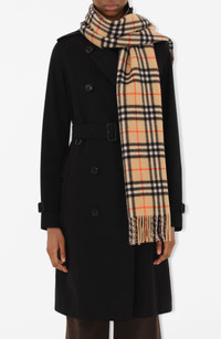The label's iconic check patterns a fringed scarf made of double-faced cashmere woven on traditional looms at a 200-year-old Scottish mill. 14" width; 78 1/2" length 100% cashmere Dry clean Made in the UK