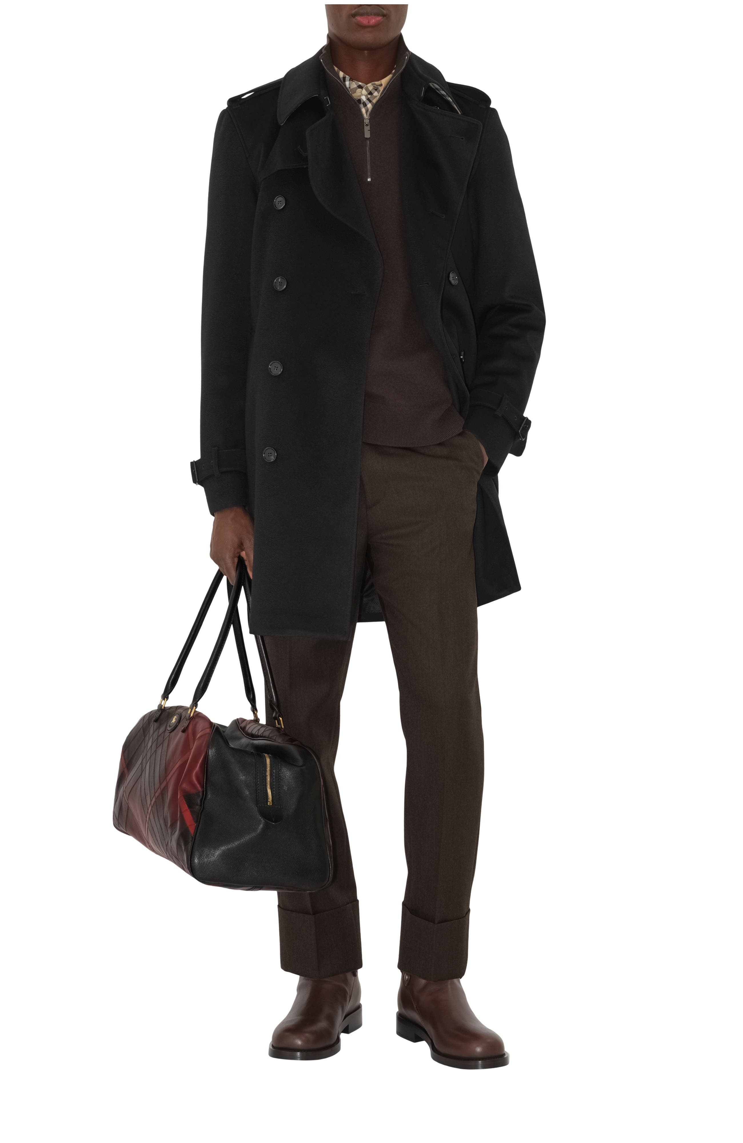 Rooted in our heritage of innovation, a trench coat in technical cashmere – designed to help you stay comfortable in the elements. The fabric is brushed for a soft finish and bonded to a thin membrane with a tonal chevron lining. Burberry Check wool cotton lines the undercollar. Cut to a regular fit with a belt to adjust the shape.||Double-breasted button closure|Hook collar closure|Epaulettes|B buckle belt|Side welt pockets|Belted cuffs|Back button vent|Burberry Check undercollar|Comes with a garment bag Regular fit. Fits true to size, take your normal size. Length: 100cm/39.4in (size IT 50) Outer: 100% cashmere Undercollar: 81% wool, 19% cotton Lining: 100% cupro Pocket lining: 100% cotton Buttons: buffalo horn Dry clean Imported