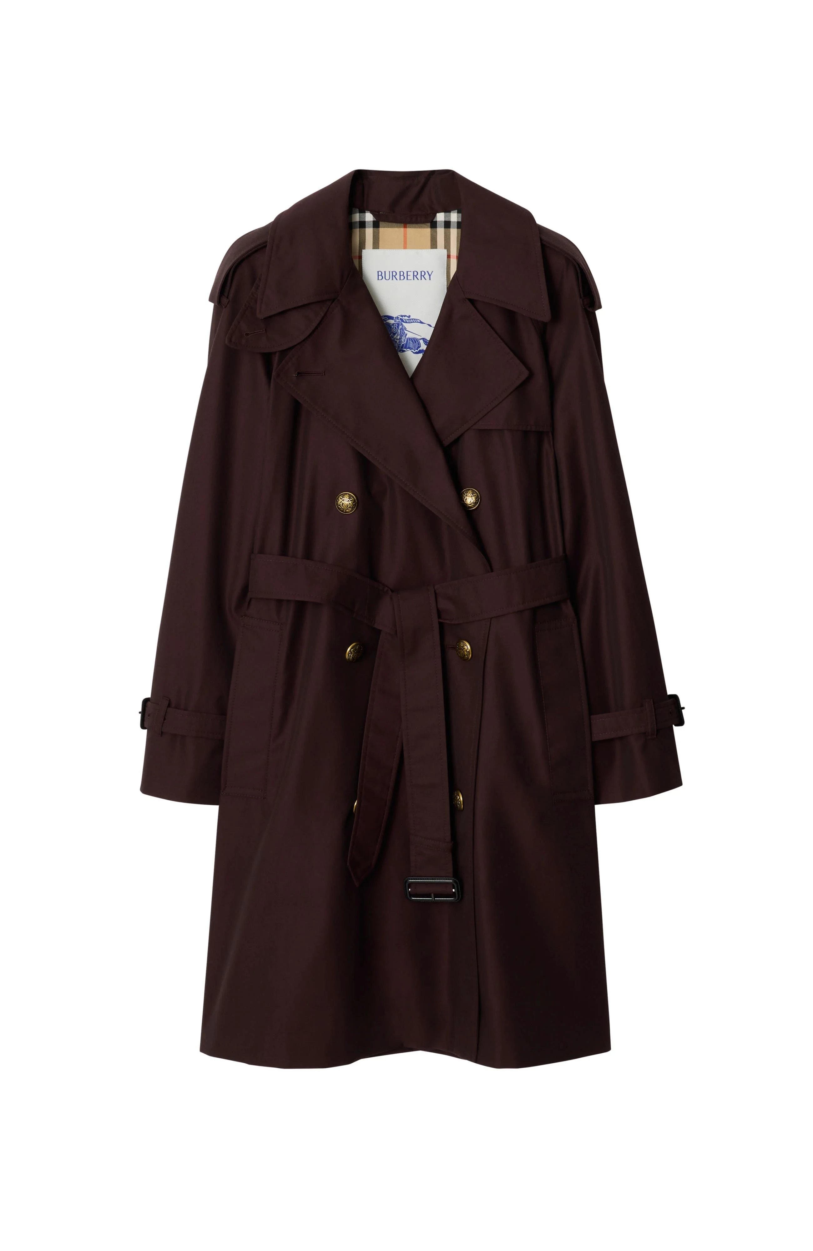A fresh expression of Burberry’s rainwear heritage, the Castleford trench coat is crafted in England from cotton gabardine. The domed buttons have an antique finish and feature our B crest flanked by a pair of unicorns – inspired by an archive emblem found on Thomas Burberry’s personal silverware. Cut to a generous, regular fit with raglan sleeves for a softly curved shoulder and effortless layering over knitwear and tailoring. Inside is Burberry Check cotton in signature sand beige.||Double-breasted button closure|Throat latch |Epaulettes |Storm shield at back|Gun flap at shoulder|Leather B buckle belt and cuffs|Side welt pockets|Back vent|Burberry Check lining and undercollar|Comes with a garment bag Regular fit. Fits true to size, take your normal size. Length: 95cm/37.4in (size UK 8) Outer: 100% cotton Lining: 100% cotton Sleeve lining: 100% viscose Buckles: 100% calf leather Specialist dry clean Made in Yorkshire, England
