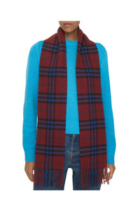 The iconic Burberry Check cashmere scarf, made in Scotland at a mill founded in 1797. Woven on traditional looms, the scarf takes more than 30 steps to complete. The fabric is washed in local spring water and brushed with teasels – dried flowers that are drawn along the surface of the cashmere to 'raise' the cloth, creating a natural lustre and ultra-soft finish.||Rectangular|Fringing at both ends 168 x 15cm/66.1 x 5.9in 100% cashmere Specialist dry clean Made in Scotland