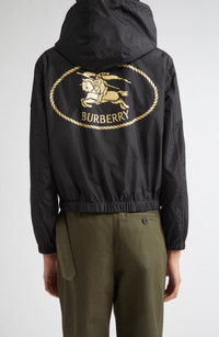 Burberry's Knight stamp—an archival motif first seen on handbags in the 1980s—patterns the back of this hooded jacket cut from lightweight nylon and finished with B-cut zip pulls. Two-way front-zip closure Drawcord hood Elastic cuffs Side-seam zip pockets 100% polyamide Hand wash, line dry Imported Designer Clothing