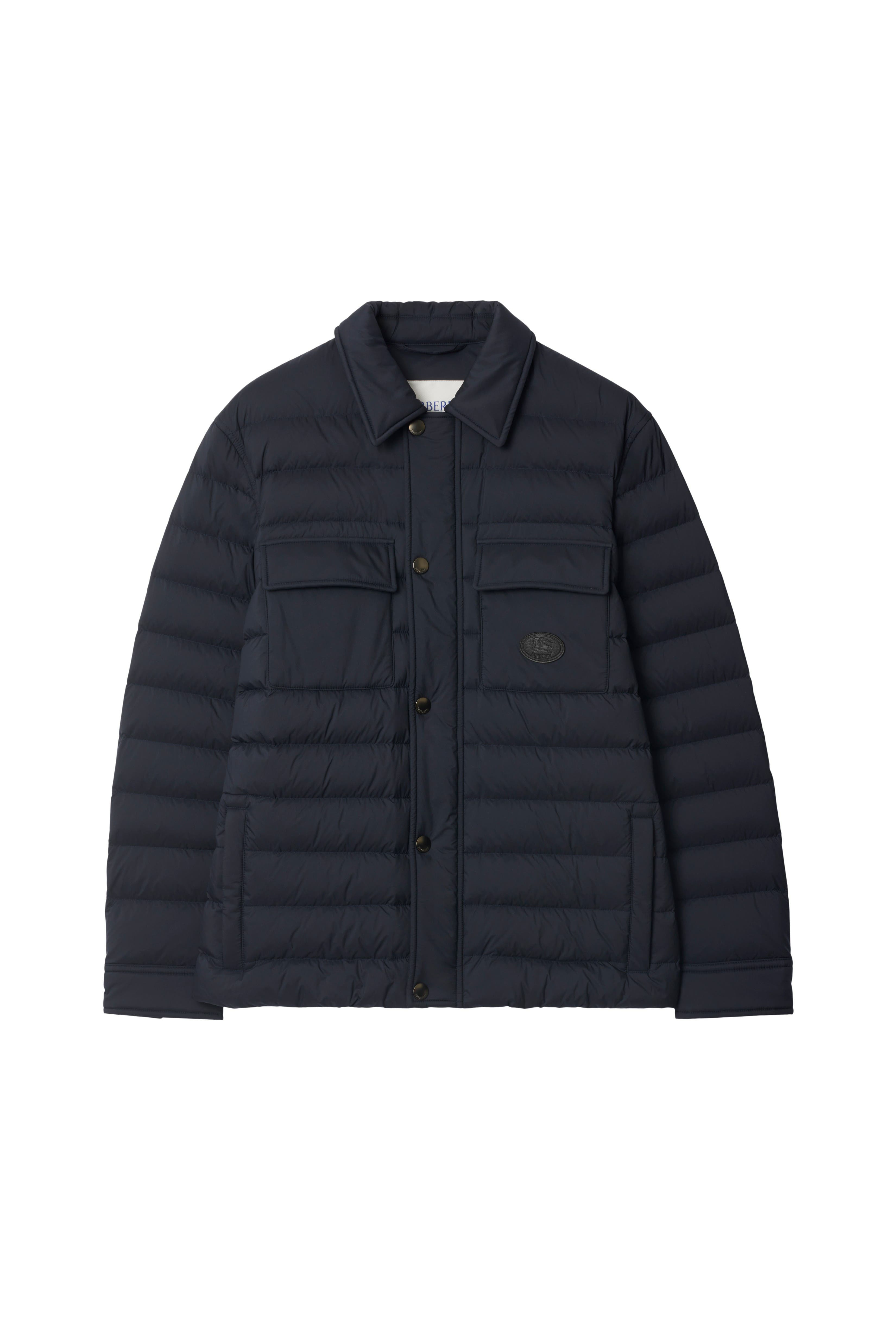 An overshirt in nylon, padded with goose down and feathers. Cut for a regular fit, the design is finished with our Knight stamp – an archival motif first used in the 1980s.||Press-stud and two-way zip closure|Chest press-stud flap patch pockets, side zip pockets|Press-stud cuffs|Leather patch with Equestrian Knight Design at chest Regular fit. Fits true to size, take your normal size. Length: 70cm/27.6in (size UK L) Model’s height: 187cm/6ft 2in. Model wears size UK L Outer: 100% polyamide Trim: 100% leather Lining: 100% polyamide Filling: 90% goose down, 10% goose feathers Wadding: 100% polyester fibres Machine wash Imported