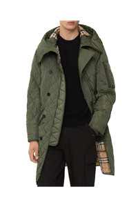 A Burberry parka from the Spring/Summer 2018 collection, reissued in a limited edition of 500. Staying true to the original khaki green nylon outer, the quilted coat is updated with a Burberry Check cotton twill lining in signature sand beige. Cut to a relaxed fit with a drawcord hood and waist to adjust the shape.||Button and two-way zip closure|Drawcord hood and waist|Chest press-stud welt pockets, side press-stud flap pockets, sleeve zip and pen pocket|Storm cuffs|Burberry Check lining|Comes with a garment bag Relaxed fit: a looser cut than our regular fit. Length: 100cm/39.4in (size IT 50) Model’s height: 187cm/6ft 2in. Model wears size IT 50 Outer: 100% polyamide Trim: 89% cotton, 10% polyamide, 1% elastane Lining: 100% cotton Pocket lining: 100% cotton Filling: 100% polyester fibres Buttons: buffalo horn Specialist dry clean Imported