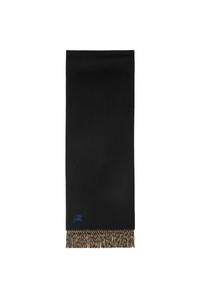 A reversible scarf in cashmere, embroidered with our Equestrian Knight Design. Woven in Scotland at a mill founded in 1797, the fabric is washed in local spring water and brushed for an ultra-soft finish.||Rectangular|Fringing at both ends 168 x 30cm/66.1 x 11.8in 100% cashmere Specialist dry clean Made in Scotland