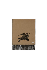 A reversible scarf in cashmere, jacquard-woven with the Equestrian Knight Design and a logo. Brushed for an ultra-soft finish.||Rectangular|Fringing at both ends|Jacquard-woven Burberry lettering 210 x 45cm/82.7 x 17.7in 100% cashmere Specialist dry clean Made in Italy