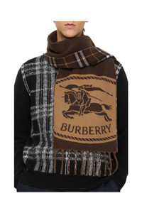 A scarf made in Italy from cashmere, jacquard-woven with our Knight stamp – an archival motif from the 1980s. The design reverses to the Burberry Check and the fabric is washed for an ultra-soft finish and raised nap.||Rectangular|Fringing at both ends|Jacquard-woven Burberry lettering at ends 168 x 28cm/66.1 x 11in 100% cashmere Specialist dry clean Made in Italy