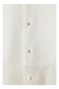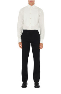 A tuxedo shirt in Italian-woven cotton silk poplin. Tailored to a slim fit, the bib front features shield-shaped brass buttons set with mother-of-pearl. ||Button closure |Spread collar |Double cuffs |Curved hem Slim fit: this style is cut to a fitted silhouette. Fits true to size, take your normal size. Length: 76cm/29.9in (size UK 39) 57% cotton, 43% silk Buttons: mother-of-pearl Specialist dry clean Imported