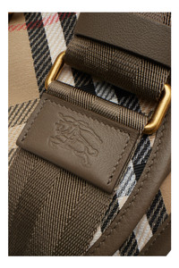 Debuted on the Burberry Summer 2025 runway, a softly structured messenger bag made in Italy from a water-repellent cotton blend woven with the Burberry Check and lined in a matching fabric. The curved style takes its name from the logo-engraved ‘b’ dog clip at the front pocket, with brushed metal hardware and a hand-stitched top handle inspired by equestrian saddles. The adjustable webbing strap has leather trims subtly embossed with our Equestrian Knight Design.||Leather top handle|Adjustable webbing strap|Zip closure|Exterior pocket with ‘b’ clip closure|Hand-painted edges|Brushed metal hardware|Embossed Equestrian Knight Design at strap|Burberry Check lining|Comes with a dust bag 27.5 x 11 x 19cm/10.8 x 4.3 x 7.5in Min. strap drop: 40cm/15.8in Max. strap drop: 60cm/23.6in Outer: 65% polyester, 35% cotton Trim: 100% calf leather Lining: 65% polyester, 35% cotton Made in Italy