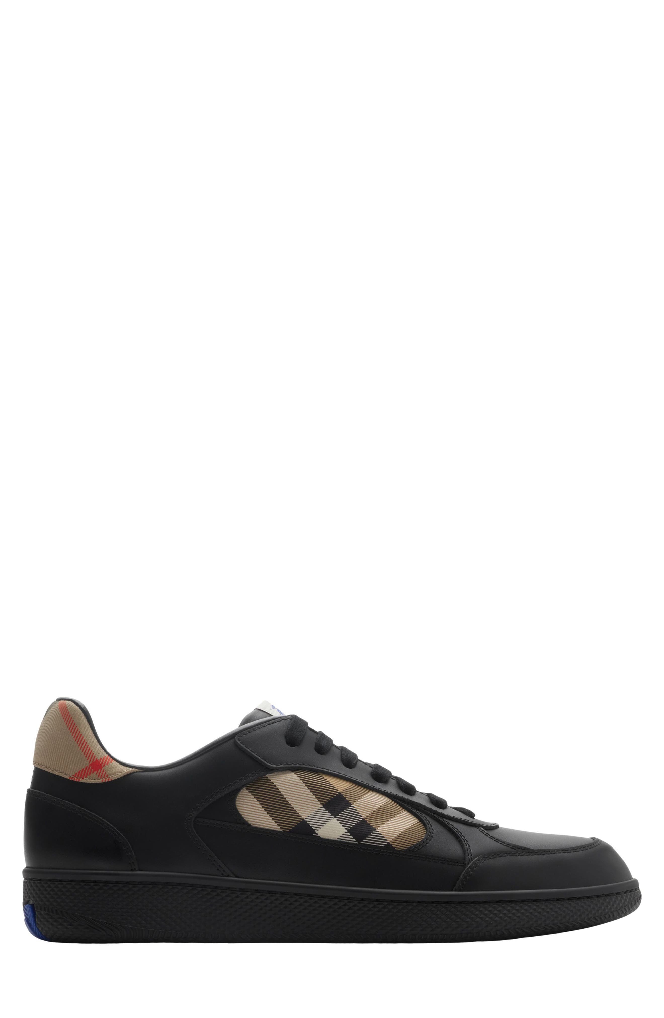 burberry Terrace Check Leather & Canvas Sneaker in Black/Sand Ip Check at Nordstrom