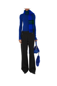 A Burberry Check cashmere scarf, made in Scotland at a mill founded in 1797. Woven on traditional looms, the fabric is washed in local spring water and brushed with teasels – dried flowers that are drawn along the surface of the cashmere to 'raise' the cloth, creating a natural lustre and ultra-soft finish. Two further washes are given for a fuller texture.||Rectangular|Fringing at both ends 200 x 52cm/78.7 x 20.5in 100% cashmere Specialist dry clean Made in Scotland
