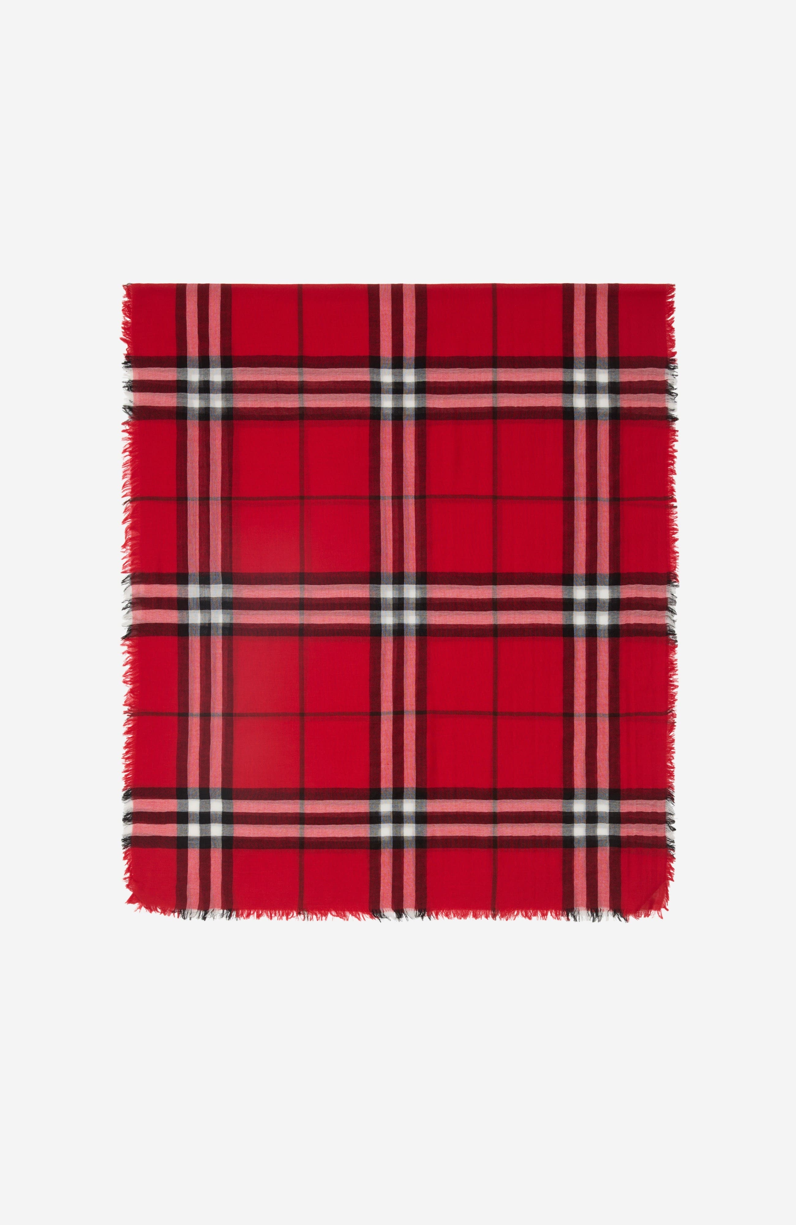 A lightweight wool scarf made in Italy. The design is woven with the Burberry Check. ||Rectangular|Eyelash fringing at the edges 200 x 90cm/78.7 x 35.4in 100% wool Dry clean Made in Italy