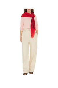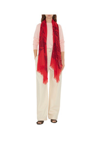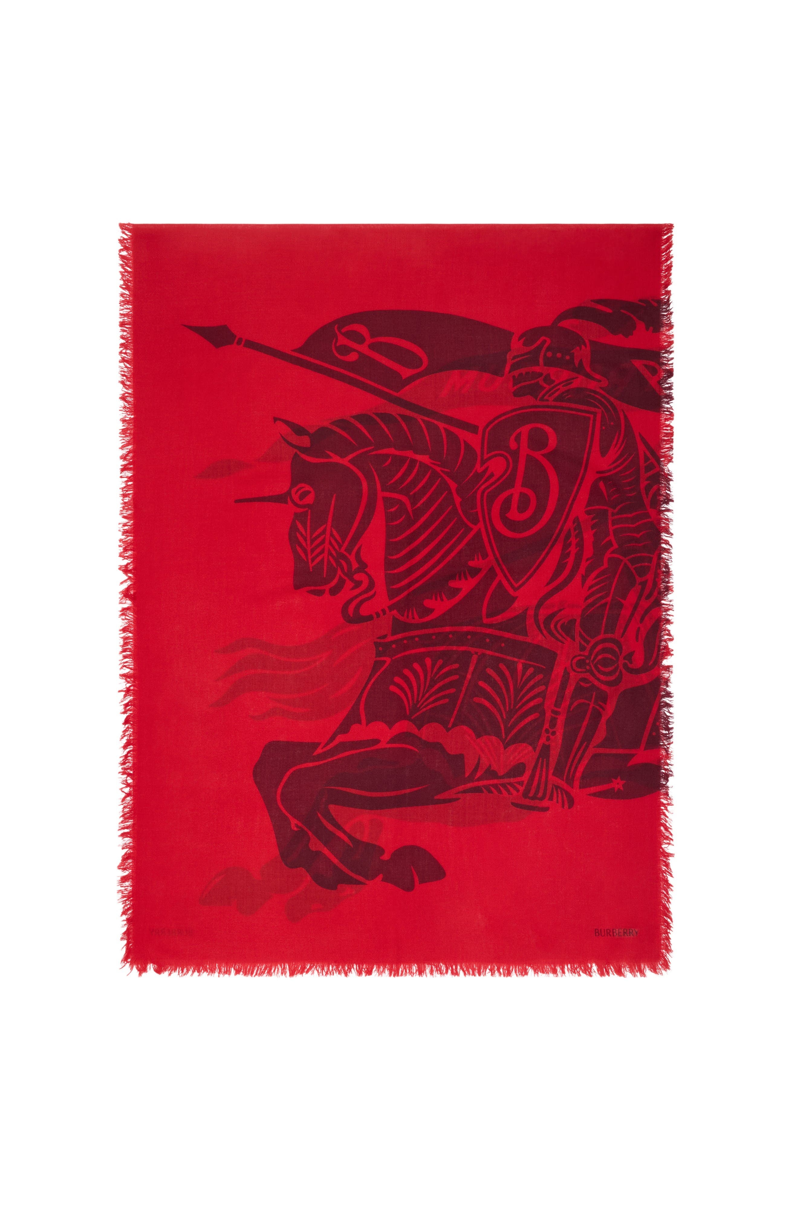 An Italian-made scarf in wool, screen-printed with the Equestrian Knight Design and our logo. The lightweight style is bordered with delicate fringing.||Rectangular|Eyelash fringing at edges|Printed Burberry lettering at corners 200 x 70cm/78.7 x 27.6in 100% wool Dry clean Made in Italy