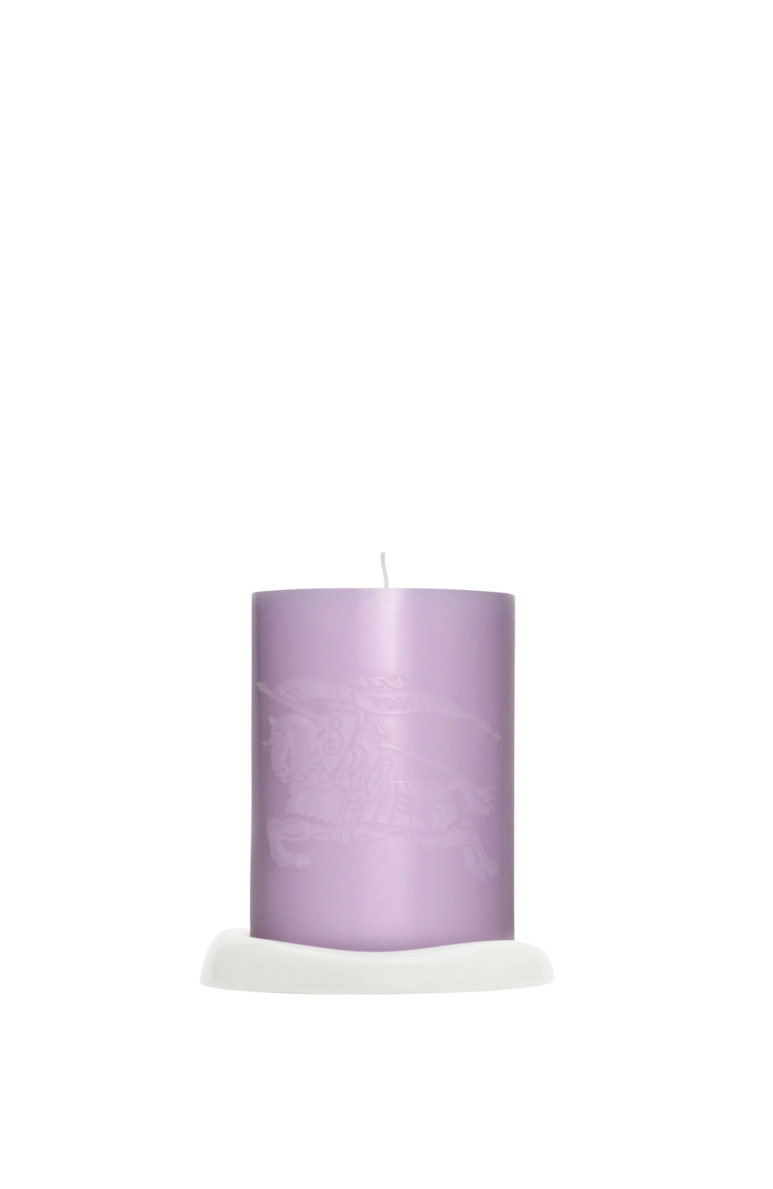 A pillar candle scented with smoky notes of woodfire and spicy clove. Made in Italy, the candle is embossed with our Equestrian Knight Design and developed to burn through the centre to retain its shape. The candle is set on a fine bone china plate, made at a ceramics workshop in Staffordshire and hand-stamped at the base with the Burberry logo. Presented in a custom designed box, wrapped in a Burberry Check sleeve with an Equestrian Knight Design sticker to denote the scent inside.||Top notes: smoked scent, Tuscan leather, Madagascar cloves |Middle notes: Sardinian myrtle, Calabrian liquorice, cut wood|Base notes: Romagna birch wood, Tuscan oakmoss, Madagascar vanilla bourbon |Burn time: 120 hours Candle: 14 x 10cm/5.5 x 3.9in Base: 13.2 x 2cm/5.2 x 0.8in Box: 16 x 16 x 21cm/6.3 x 6.3 x 8.3in Candle weight: 1kg Candle: 100% paraffin wax with fragrance Base: 100% bone china Candle: made in Italy. Base: made in UK