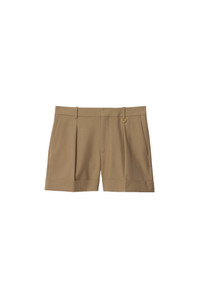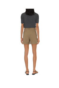Pleated shorts made in Italy from wool, tailored to a relaxed fit. The style features turn-up cuffs and a debossed Equestrian Knight Design tag at the belt loop.||Hook, button and zip closure|Side slip pockets, back welt pockets|Equestrian Knight Design tag at the belt loop Relaxed fit: a looser cut than our regular fit. Inside leg length: 12cm/4.7in (size UK 8) Model’s height: 176cm/5ft 9in. Model wears size UK 8 100% wool Pocket lining: 100% cotton Button: buffalo horn Specialist dry clean Made in Italy
