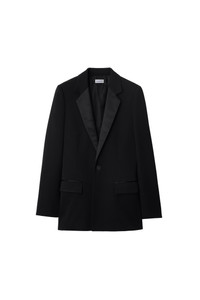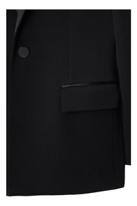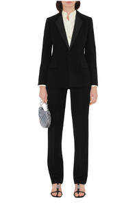 A tuxedo jacket made in Italy from grain de poudre wool, tailored to a slim fit. The style is fully lined and framed with silk lapels.||Single-breasted button closure|Notch lapels|Side flap pockets|Single vent |Fully lined, full-canvas construction, padded shoulder |Comes with a garment bag Slim fit: this style is cut to a fitted silhouette. Fits true to size, take your normal size. Length: 74cm/29.1in (size UK 8) Model’s height: 180cm/5ft 11in. Model wears size UK 8 Outer: 100% wool Trims: 100% polyester; 100% silk Lining: 100% cupro Sleeve lining: 100% viscose Specialist dry clean Made in Italy