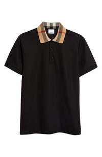Burberry's iconic check patterns the collar of this classic polo made from cotton piqué. 28 1/2" length (size Medium) Button half-placket Spread collar Short sleeves 100% cotton Dry clean Made in Portugal Men's Designer Clothing
