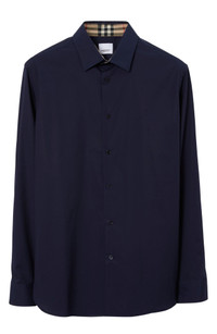 Embroidered with the label's iconic Equestrian Knight at the chest, this stretch-cotton shirt polishes your look while paying homage to the house's heritage. 30" length; 36 1/2" chest (size X-Small) Front button closure Spread collar Long sleeves with button cuffs 96% cotton, 4% elastane Machine wash, line dry Imported Men's Designer Clothing