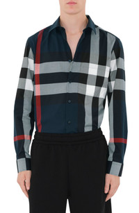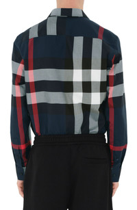 This button-up shirt is covered in a bold pattern that references the house-check colors while creating a new form of recognizable branding. 30" length; 41" chest (size Medium) Front button closure Spread collar Long sleeves with button cuffs Chest patch pocket 100% cotton Dry clean or machine wash, line dry Imported Designer Clothing