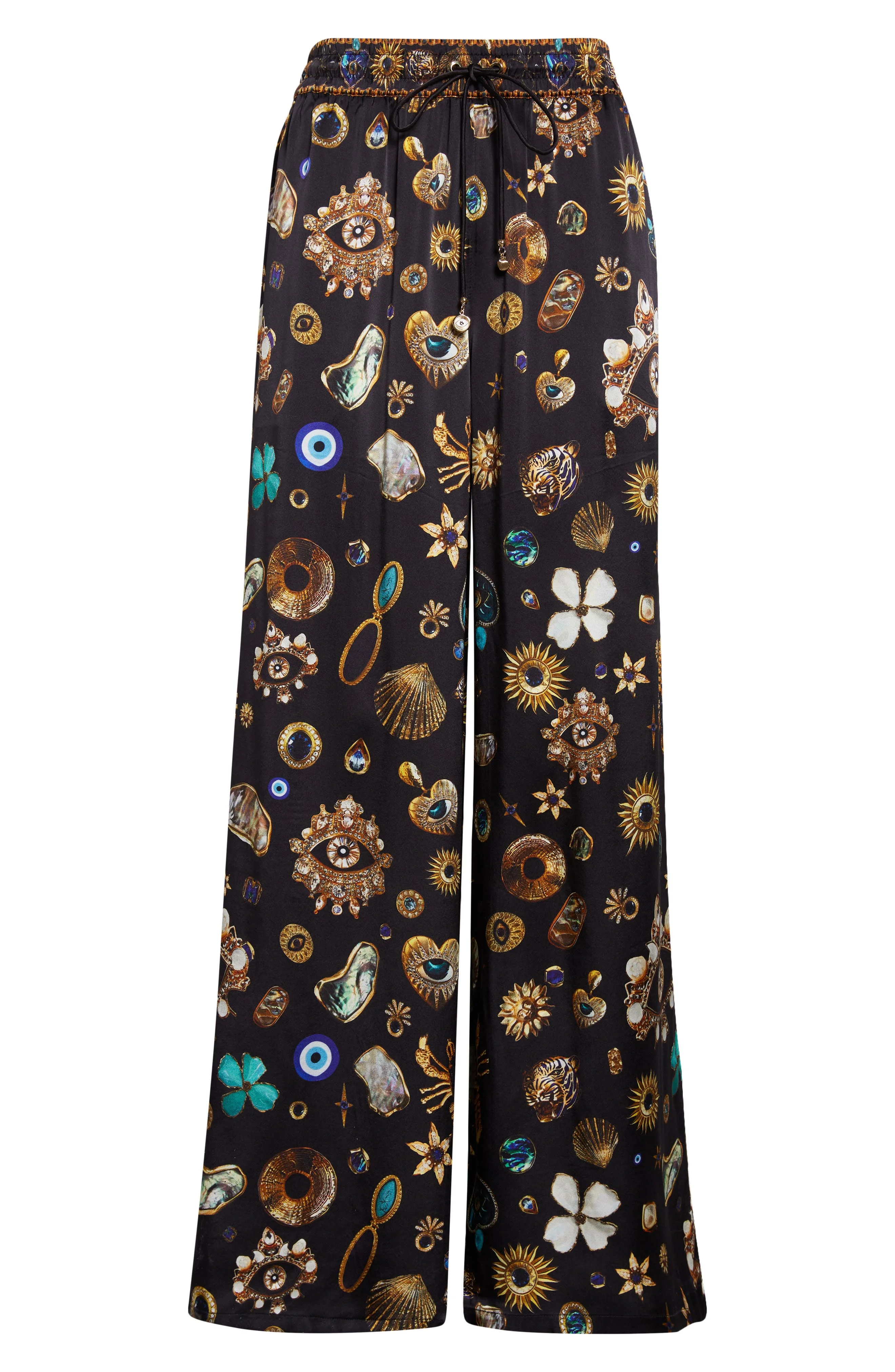 Camilla Amulets & Alchemy Print Wide Leg Silk Satin Pants in Amulets And Alchemy at Nordstrom