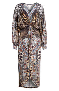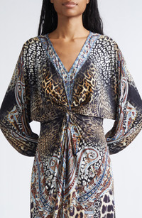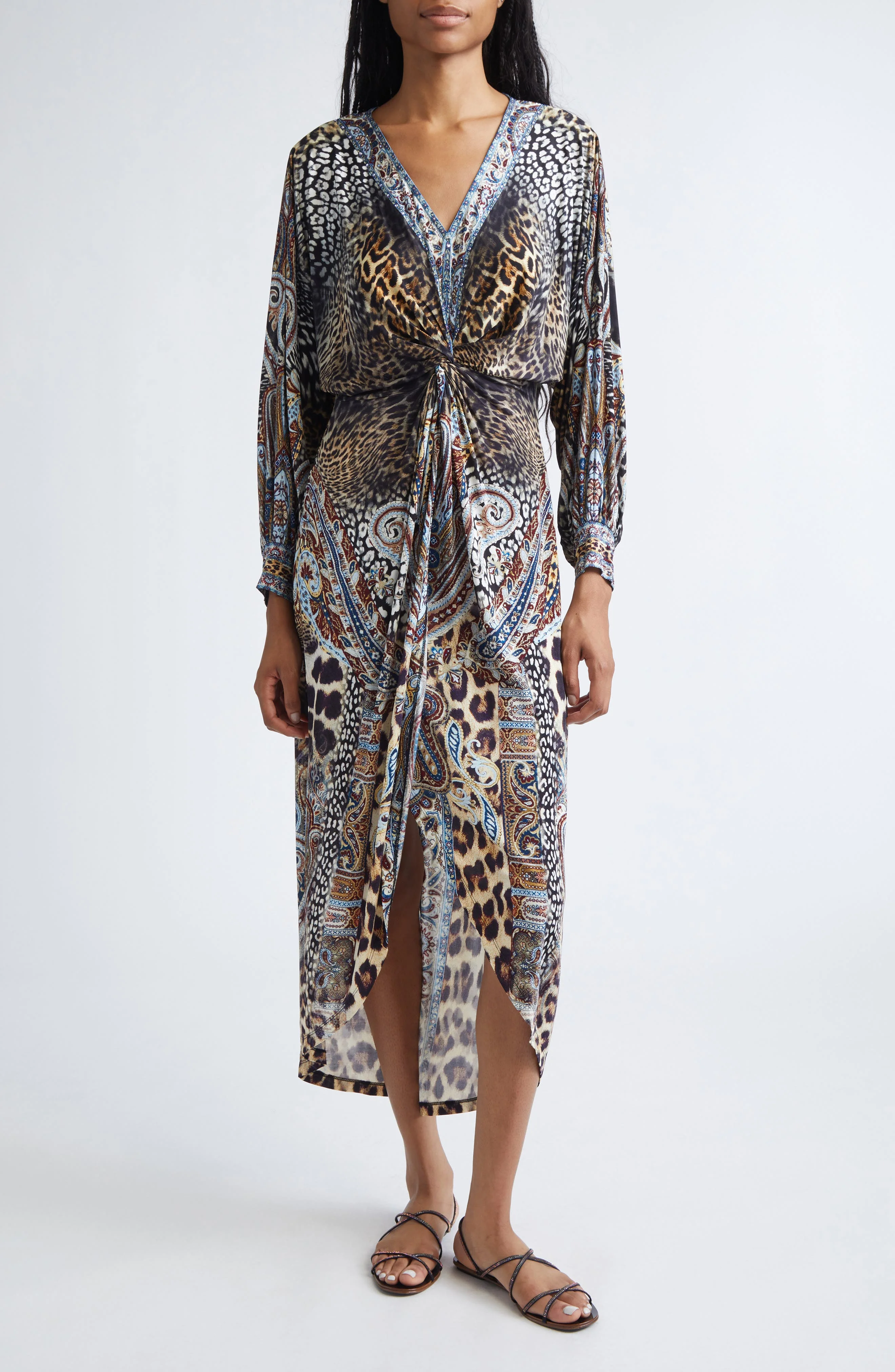 Camilla Istanbul Animalia Twist Front Long Sleeve Jersey Midi Dress at Nordstrom