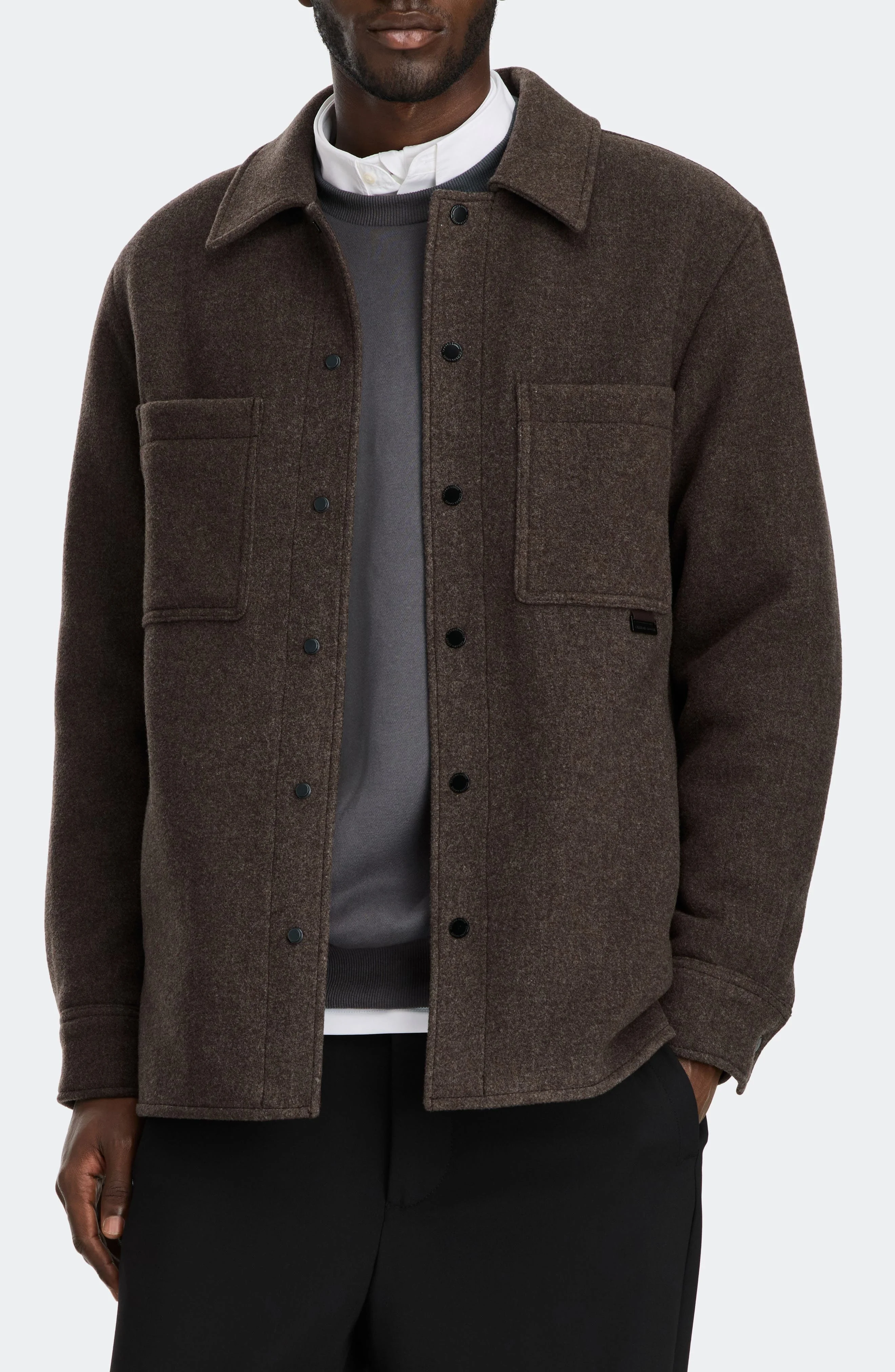 Ideal for everyday wear, this minimalist shirt-jacket is cut from an ultrasoft wool blend and framed by handy pockets. Front snap closure Point collar Snap cuffs Chest patch pockets; front welt pockets Lined, with synthetic fill 70% wool, 25% polyamide, 5% cashmere Dry clean Imported
