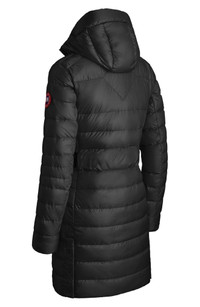 If lugging an unwieldy coat around when temps warm up is not your bag, meet your new favorite down puffer with lightweight warmth in a packable, totable design. 34" length (size Medium) Two-way front-zip closure with chin guard and interior storm flap Drawcord-toggle hood Recessed Power Stretch® cuffs Vertical side-zip pockets; interior pockets Snap-tab adjustable back waist Side snap-closure vents Packs into bag with drawcord-toggle closure and crossbody/backpack strap Reflective details enhance visibility in low light or at night Lightweight: Canada Goose Thermal Experience Index™ 1 is designed for active pursuits and is temperature rated to 23°F/-5°C Recycled-nylon lining, with 750-fill-power down fill 100% recycled polyamide Machine wash, tumble dry Made in Canada