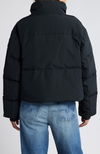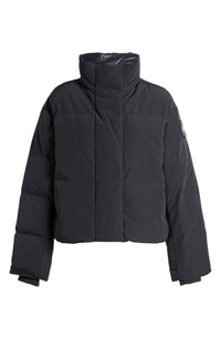 The ultimate in versatility, this cropped jacket is made from durable, water-repellent Arctic Tech® fabric, Canada Goose's proprietary material made from recycled polyester and organic cotton. The result is a lightweight, multiseason style with plenty of pockets and built-in shoulder straps for easy toting when not being worn. Two-way front-zip closure with snap storm placket Stand collar Inset ribbed storm cuffs Hidden side-zip pockets; two interior drop-in pockets; interior zip pocket Interior shoulder straps for hands-free carry Drawcord-toggle hem Durable water-repellent (DWR) finish Versatile: Canada Goose Thermal Experience Index™ 2 is designed for core warmth and versatility and is temperature rated to 5°F/-15°C Lined, with 625-fill-power down (Canada) fill 85% recycled polyester, 15% organic cotton Dry clean Made in Canada