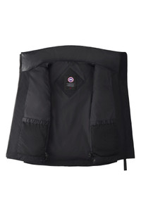 The ultimate in versatility, this cropped vest is made from durable, water-repellent Arctic Tech® fabric, Canada Goose's proprietary material made from recycled polyester and organic cotton. The result is a lightweight, multiseason style with and adjustable fit and plenty of pockets for hand warming and essentials toting. Two-way front-zip closure Stand collar Hidden side-zip pockets; two interior drop-in pockets Drawcord-toggle hem Durable water-repellent (DWR) finish Lightweight: Canada Goose Thermal Experience Index™ 1 is designed for active pursuits and is temperature rated to 23°F/-5°C Lined, with 80% down, 20% feather 750-fill-power fill 85% recycled polyester, 15% organic cotton Dry clean Made in Canada