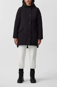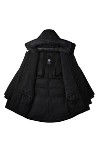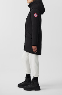 This water-resistant parka with down insulation will get you through harsh cold and winds with extended coverage on the hood, ribbed cuffs and a drawcord waist. A snap-closure gusset at the back provides venting and increased range of motion. 33 1/2" front length; 36" back length (size Medium) Water-resistant Two-way front zip closure with button placket Hood features a removable zipper guard for the option of changing your hood trim for a customized look Interior shoulder straps for hands-free carry Recessed ribbed cuffs to keep in heat Front flap pockets with fleece lining; two interior zip pocket; two interior mesh pockets Lined, with 625-fill-power down 84% polyester, 16% cotton; 100% recycled nylon lining Dry clean Made in Canada Certified to the Responsible Down Standard (RDS) by Control Union
