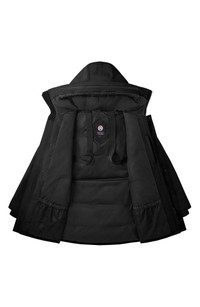 Sure to be a cold-weather staple, this cleanly designed parka features a mid-thigh length for maximum protection against chilly temperatures. The Langford is wearable as a backpack when you need to have it handy without having it on and cozy 625-fill-power down insulation ensures you'll be toasty warm as you brave harsh conditions. 35" length (size Medium) Two-way front zip closure with snap storm placket Fixed hood with removable zip guard Front flap and handwarmer pockets; interior drop-in and zip security pockets Interior shoulder straps for hands-free carry Lined, with 625-fill-power down insulation 84% polyester, 16% cotton Dry clean Made in Canada