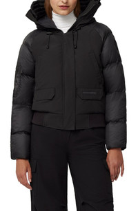 A reliable combination of partially recycled Organic Arctic Tech® with featherlight ripstop creates a modern silhouette with superior protection from the cold. An adjustable hood with a roomy fit, 625-fill-power down insulation and multiple pockets for storage enhance the must-have quality of this all-season jacket. 22" length (size X-Small) Two-way front-zip closure with storm flap Stand collar; down-filled drawcord-toggle hood with removable brim Ribbed cuffs and hem Chest welt hand-warmer pockets; front flap pockets; sleeve utility pen pocket; two interior mesh drop-in pockets; one interior zip pocket Interior shoulder straps for hands-free carry Water-repellent Fundamental: Canada Goose Thermal Experience Index™ 3 is designed for fundamental warmth and everyday use and is temperature rated to -4°F/-20°C Recycled-nylon lining, with 625-fill-power down fill 86% recycled polyester, 14% cotton with 100% recycled-nylon contrast Dry clean Made in Canada Certified to the Responsible Down Standard (RDS) by Control Union