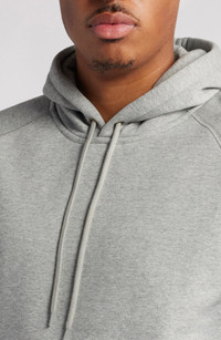 Casual and comfortable, this wardrobe-staple fleece hoodie made with soft cotton sports a relaxed fit that's perfect for layering in the cold. 27 1/2" length (size Medium) Drawstring hood Banded cuffs and hem Kangaroo pocket 58% cotton, 42% polyester Machine wash, line dry Imported