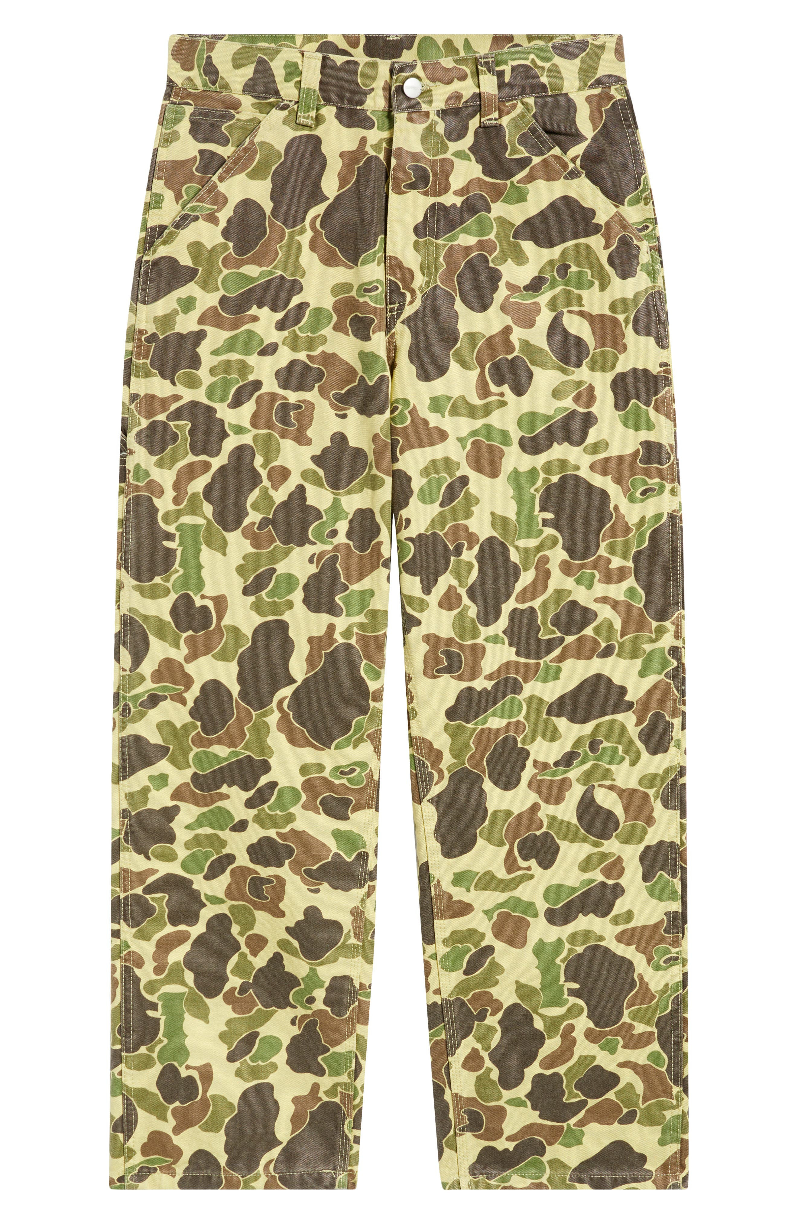 Built to put in a shift then head out, these camo work-inspired pants channel Carhartt's know-how in durable Dearborn organic-cotton canvas with a sturdy feel that breaks in not breaks down. A field-ready print keeps the look authentic, while the straight-leg silhouette wears well from workshop to walks. Zip fly with button closure Five-pocket style 100% organic cotton Dry clean or machine wash, tumble dry Imported