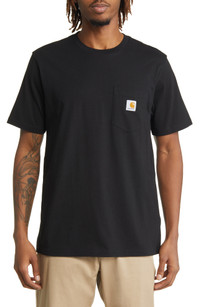 A small logo patch brands the chest pocket of this T-shirt made for weekend-ready comfort from soft, breathable cotton. 27 1/2" length (size Medium) Crewneck Short sleeves 100% cotton Machine wash, line dry Imported