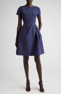 Carolina Herrera Beatuea Neck Silk A-Line Dress in Midnight at Nordstrom