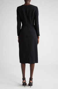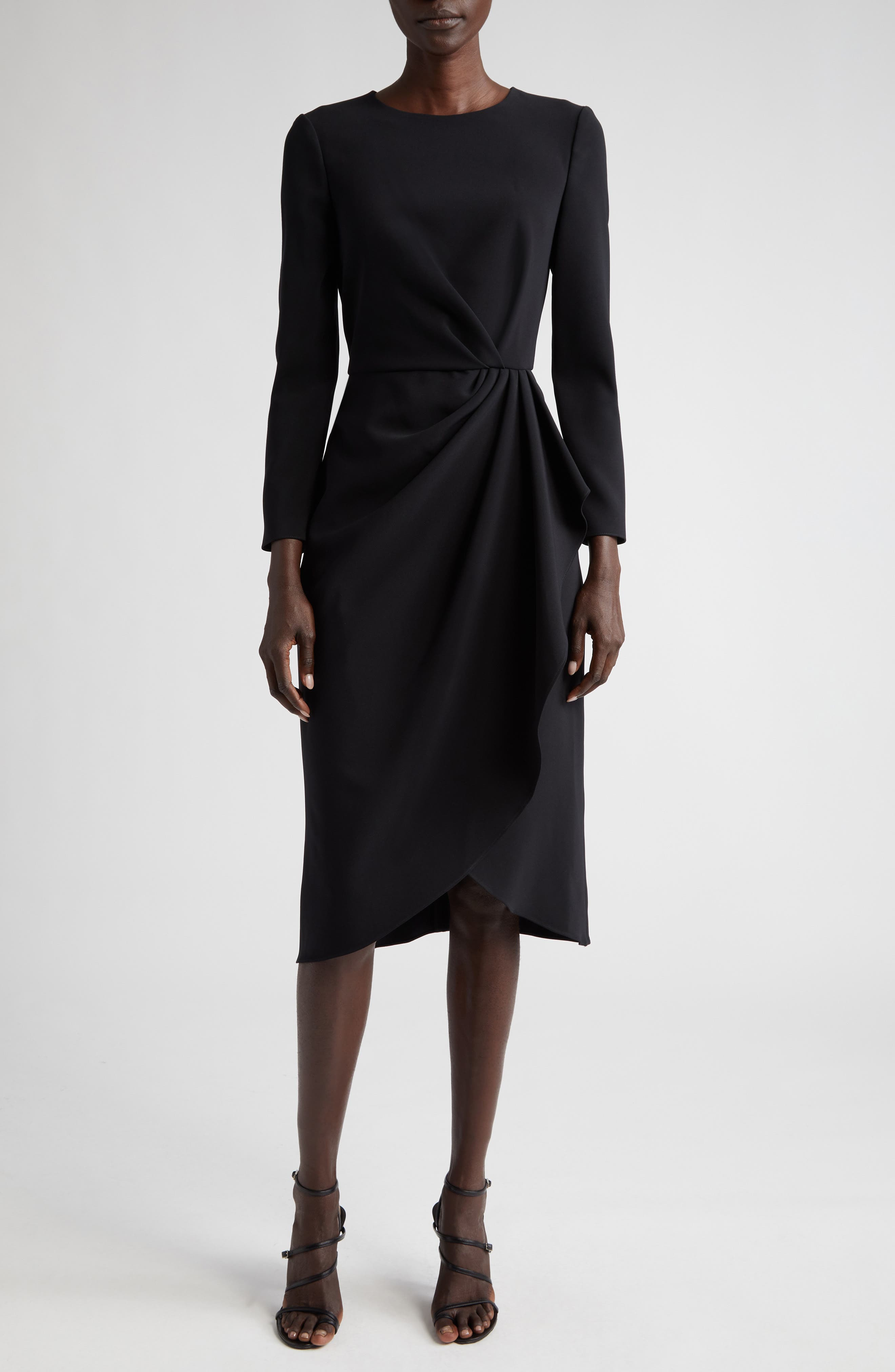 Carolina Herrera Pleated Long Sleeve Tulip Midi Dress in Black at Nordstrom