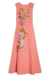 Floral-Embroidered Midi Dress