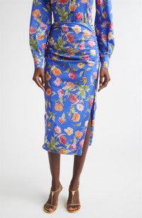 Carolina Herrera Poppy Print Ruched Pencil Skirt in Bluebell Multi at Nordstrom
