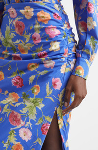 Poppy-Print Ruched Midi Skirt