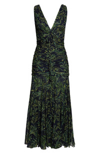 Olive Branch-Print Gathered Midi Dress
