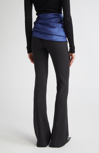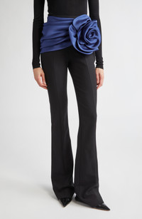 Featured on the label's fall '25 runway, bootcut pants detailed with front pintucks take a dramatic turn via a wide gathered sash adorned with a handcrafted rosette. Hidden side-zip closure Split cuffs 97% virgin wool, 3% elastane Dry clean Made in the USA Designer Clothing Hispanic & Latinx Owned/Founded