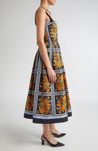 Wes Gordon's perennial nature fascination springs forth in a windowpane floral pattern on this lookbook-featured stretch-faille midi dress. This season's nostalgic silhouettes take cues from the dolls Gordon's mother collected and dressed in handmade clothing in the '50s and '60s. Hidden back-zip closure Square neck Side-seam pockets 49% cotton, 47% viscose, 4% elastane Dry clean Made in the USA Designer Clothing Hispanic & Latinx Owned/Founded