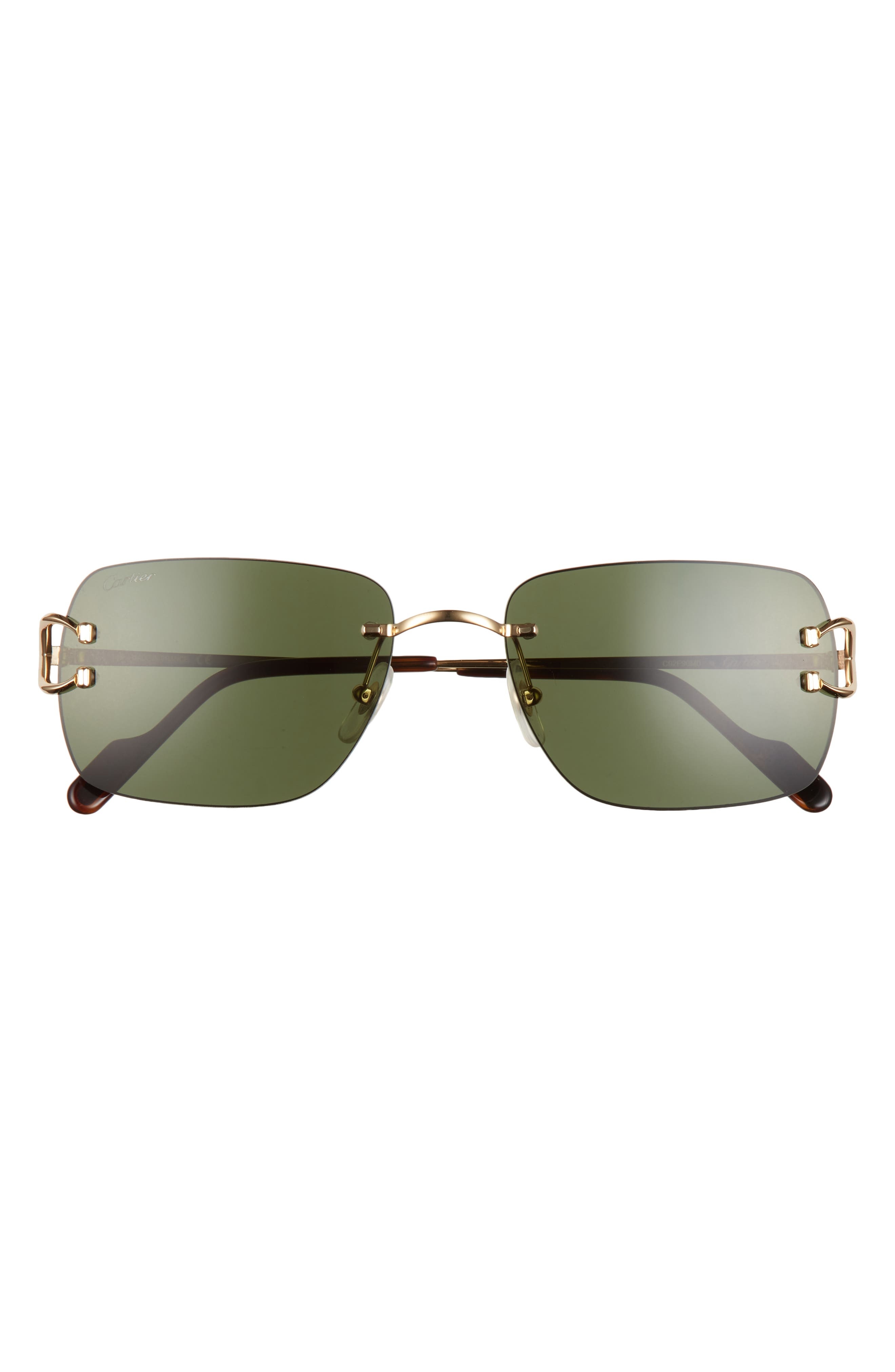 Rimless rectangular sunglasses get their glam from gleaming temples in a sleek, streamlined design. 59mm lens width; 19mm bridge width; 145mm temple length 100% UV protection Lightweight nylon lenses Metal Made in France