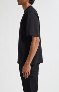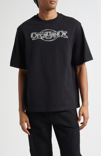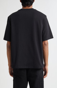 A high-shine dimensional chrome logo vaults off the chest of this T-shirt, catching light with every move and casting a sleek shadow for a true 3D read. Cut from breathable organic cotton with a clean crew neckline and an easy drape, this T-shirt delivers graphic punch with a refined finish. Crewneck Short sleeves 100% organic cotton Machine wash, dry flat Made in Portugal Designer Clothing