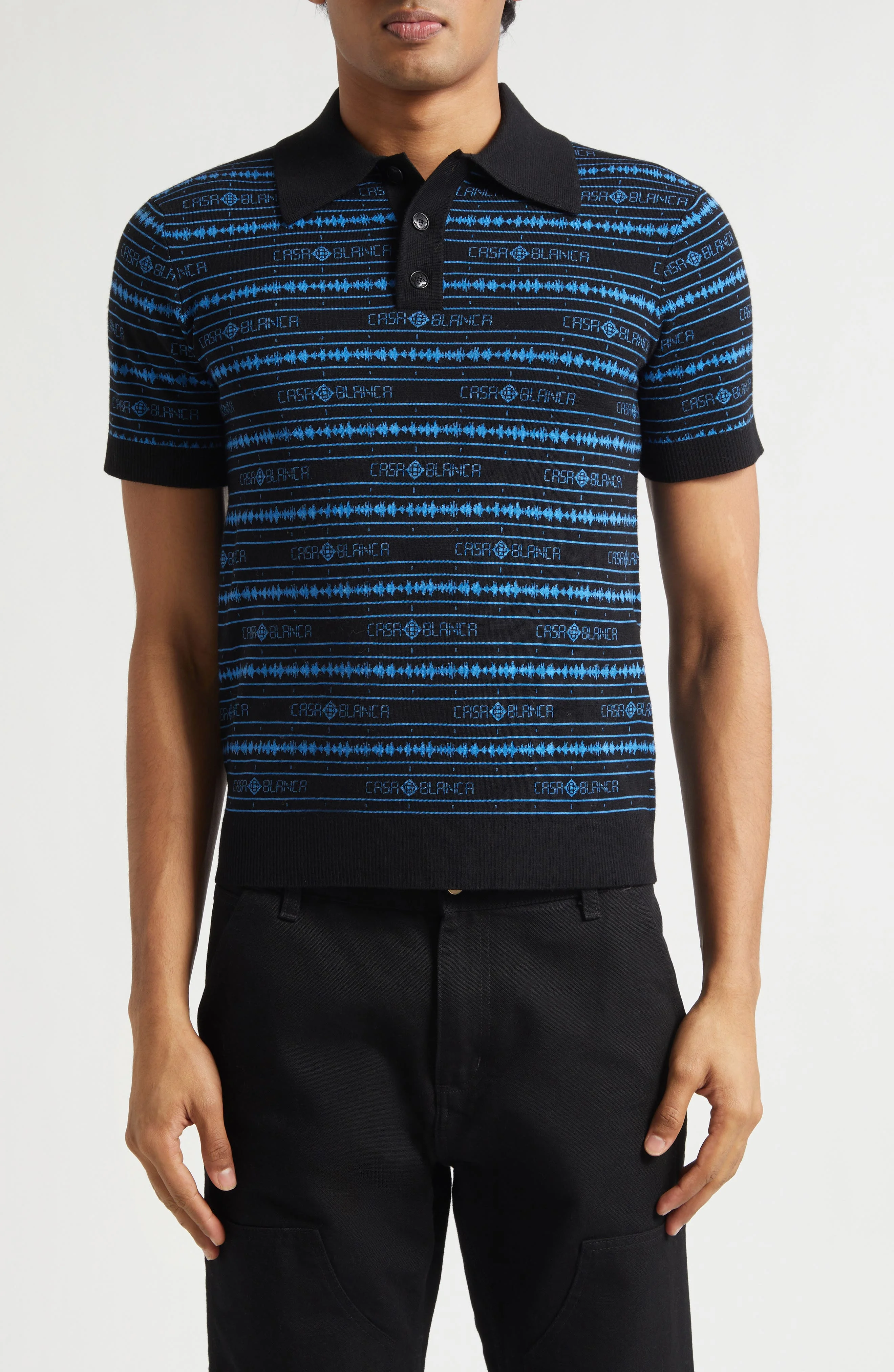 Casablanca Sound Wave Logo Jacquard Wool Polo at Nordstrom