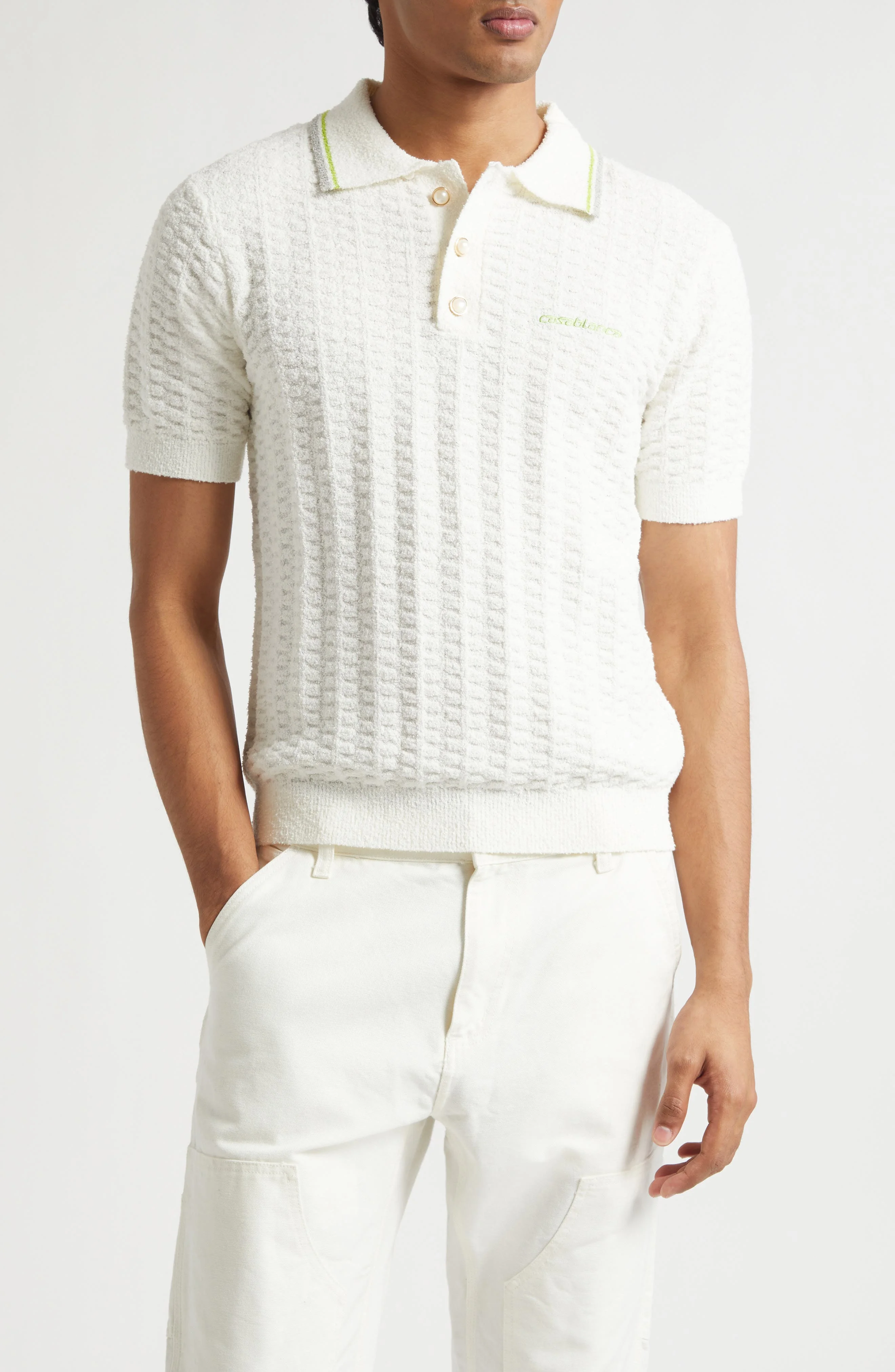 Casablanca Tennis Logo Embroidered Bouclé Polo in White at Nordstrom