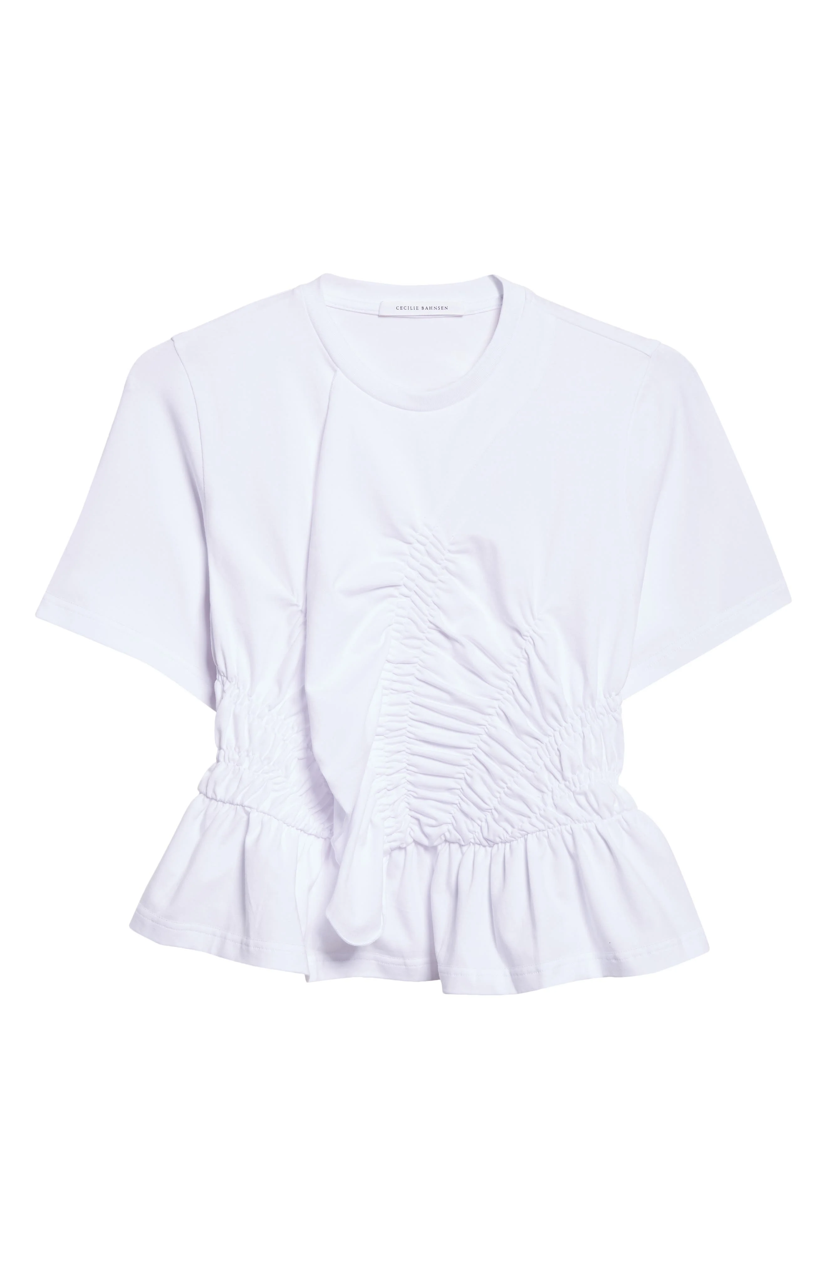 Cecilie Bahnsen Ace Smocked Jersey Peplum T-Shirt in White at Nordstrom