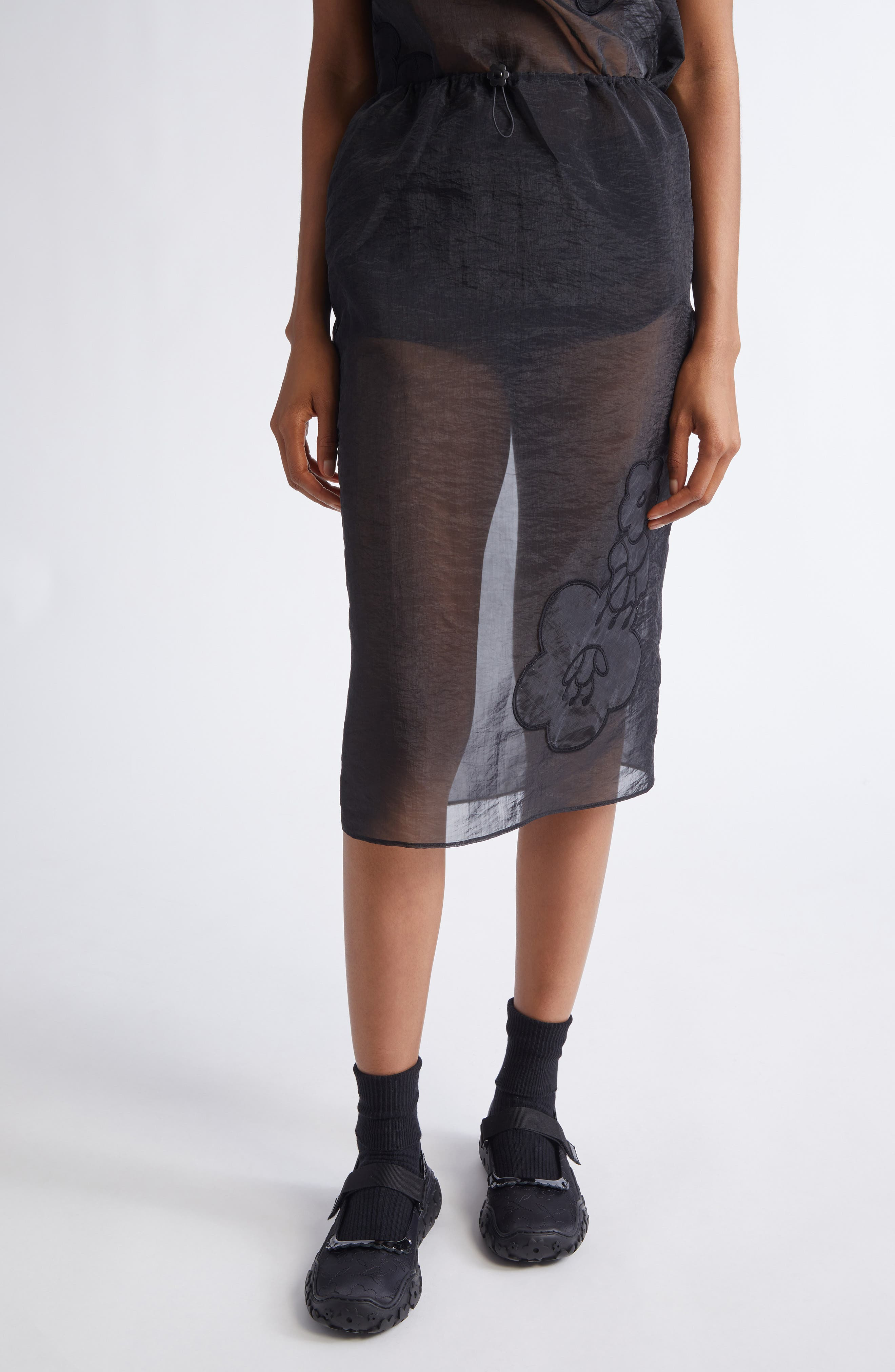 The Danish designer's reverence for romance springs forth in this lookbook-featured skirt decorated with signature floral appliques. It's made from Bahnsen's liquid myrtia—an airy, transparent organza with a fluid sheen. Drawcord-toggle waist Back slit Sheer Unlined 55% polyamide, 45% polyester Dry clean or hand wash, dry flat Imported Designer Clothing