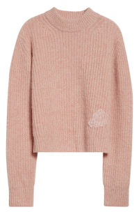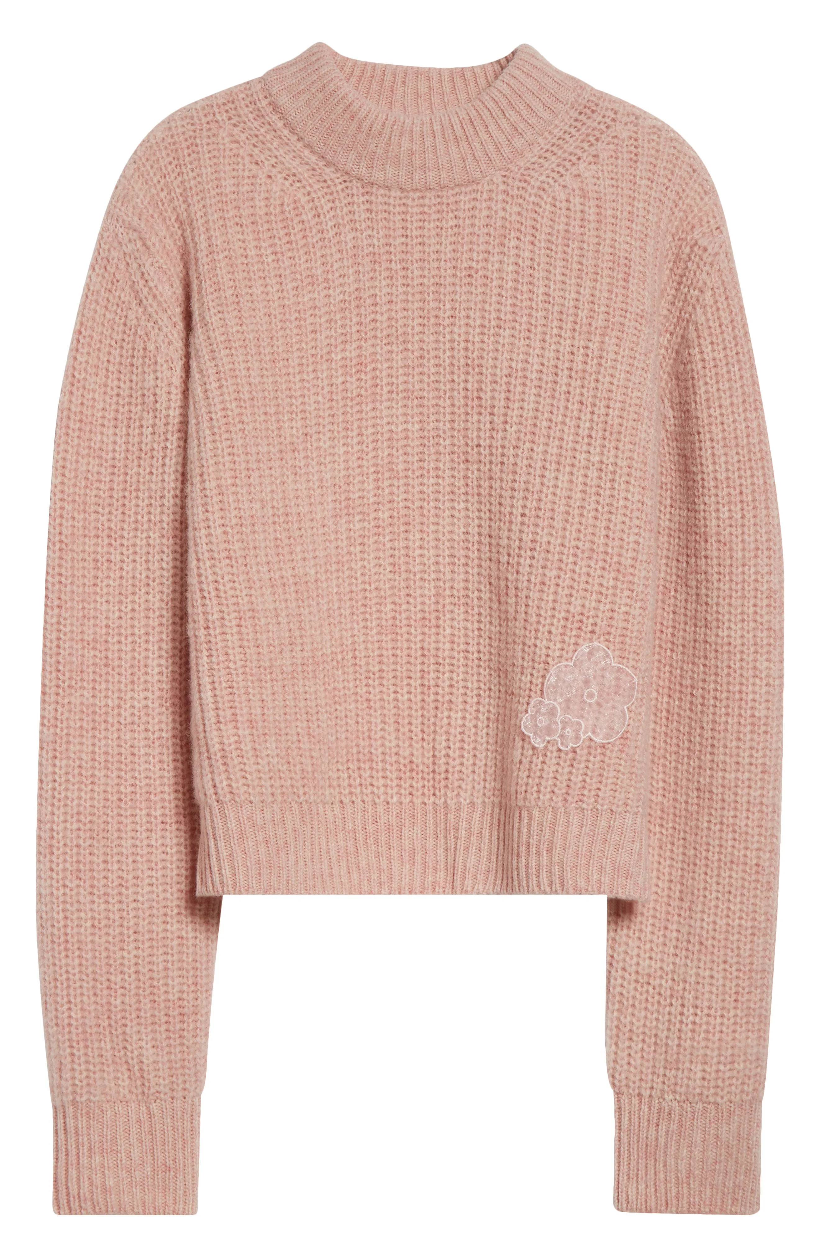 Cecilie Bahnsen Bega Floral Appliqué Wool Sweater in Soft Pink at Nordstrom